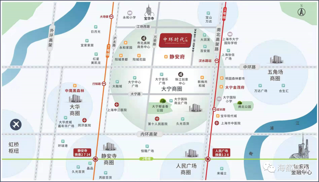 项目地址 中铁时代广场位于江场西路299号,属于”上海2035“规划中的重点开发区域 静安区大宁CBD核心区!项目由7幢塔楼、开放的商业街区、主题广场和主题绿化公园组成,是一个集精装SOHO、甲级办公、星级酒店、休闲娱乐于一体的大型城市综合体。