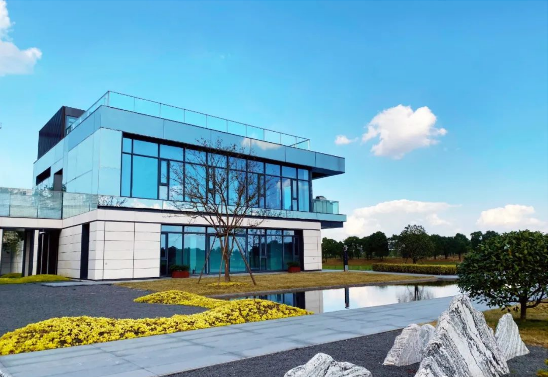 坐落于旅游景区美兰湖畔,紧邻高尔夫球场,私享城市风光,打造一方水岸秘境。项目运用大面积玻璃墙体,打造无切割方正空间,3-5层玻璃建筑群落,以约0.4容积率散落湖畔。