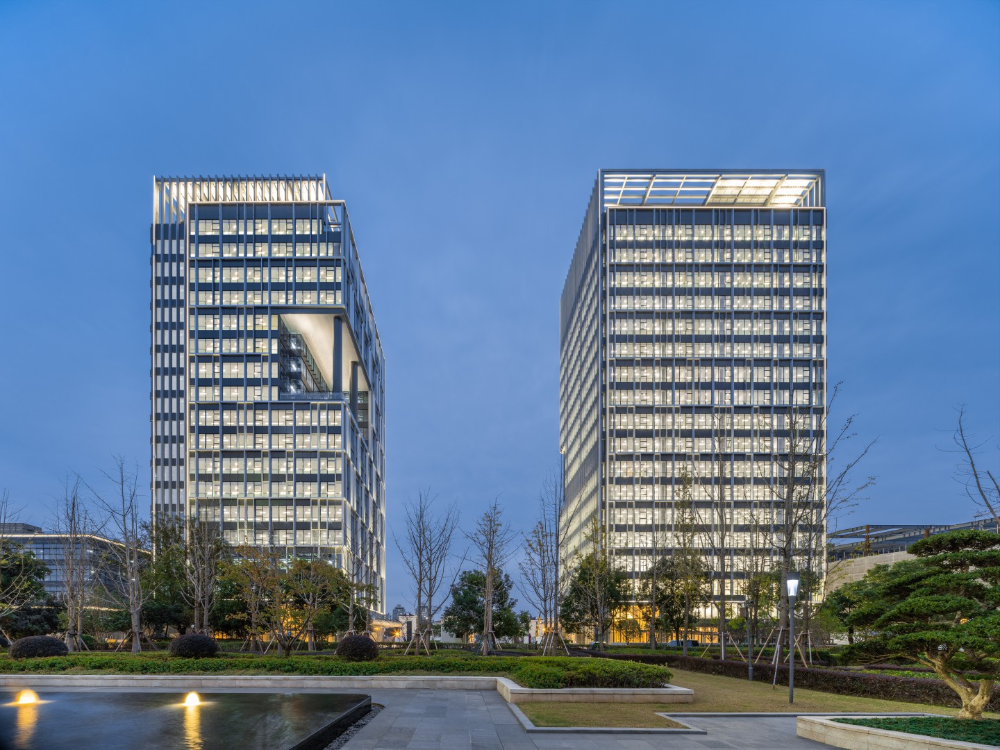 项目总建筑面积约为20万方。2栋超甲办公楼,3栋总部办公楼,LEED/WELL双铂金认证建筑。7个足球场大小的广场绿化,约12,000平米商业配套。集多功能会客厅、智能会议室、空中花园、六星级行政洗手间等奢华空间于一体。