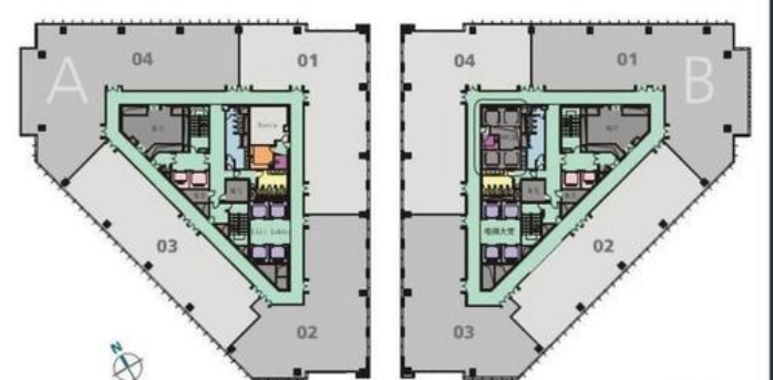 该广场是一个集商业、办公的综合楼项目,采用高低双塔楼设计,使整体外形增加层次感,有变化及更富趣味性。东南角地处世纪大道及张扬路交汇处,成为场地主入口广场。两座塔楼之间采用玻璃顶棚作为中庭大堂,南北贯通。塔楼A为18层,塔楼B为23层。地下室为三层,用作地下车库和设备用房及人防。
