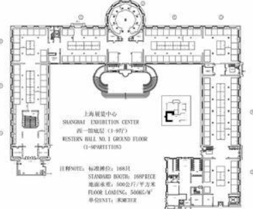 上海展览中心占地9.3万平方米,建筑面积8万平方米,有42个多功能展厅,100多间会议用房,总面积达10000平方米的办公用房以及影剧院、宴会厅咖啡厅等。院内有一条环形道路将6片总面积达1.5万平方米的广场、1.5万平方米的花园绿地、1000多平方米的大型灯光音乐喷泉和7幢建筑串联在一起,浑然一体。大院南北有9个大门分别通向延安中路和南京西路,内外交通四通八达,十分便捷。为各方宾客营造了一个舒适、优美的活动环境。